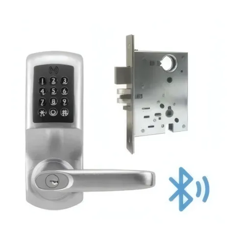 BLE & Wi-Fi Enabled Mortise Lockset with Auto-Deadbolt. Designed for secure, connected access control in commercial door applications.