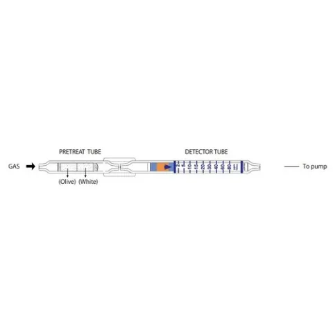 Kitagawa Gas Detector Tube change colors when chemical reagnets filled in a glass tube react with sampled target gas through the tube. The stain created is proportional in length to the concentration of the target gas, so the concentration is read directly off the printed scale on the tube.