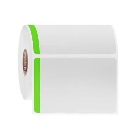LabTAG DT-56C1-1BGA Paper Labels for Direct Thermal Printers 3" x 2", with color tab, White with Green Color Tab 1 Inch Core