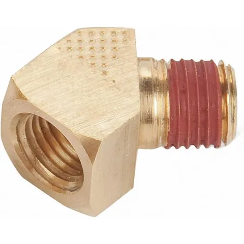 Legris offers the broadest line of pipe fittings in the marketplace today. All pipe fitting threads are made to Dryseal standards. Parker's pipe fittings meet all functional requirements of SAE J530 and SAE J531. Pipe fittings are compatible with copper and brass tubing and iron pipe. This 45° elbow has 1/4" Female Pipe and 1/4" Male Pipe connections.