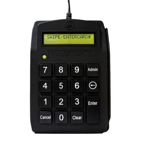 MagTek's DynaPAD is a secure card reader authenticator (SCRA) combined with an easy-to-use keypad and a large 2-line x 15-digit liquid crystal display (LCD) allowing for either swipe card data or manual-entry of card data.