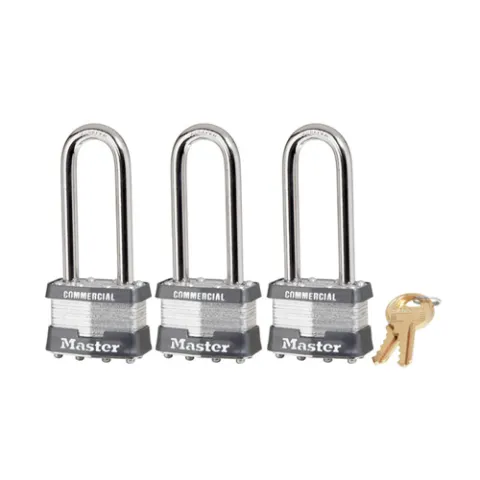 Master Lock 1TRILJCOM No. 1 Laminated Steel Padlock, 5/16 In Dia, 3/4 In W X 15/16 In H Shackle, Silver/Gray, Keyed Different, Keyed Varies (3 pcs / Pack)
