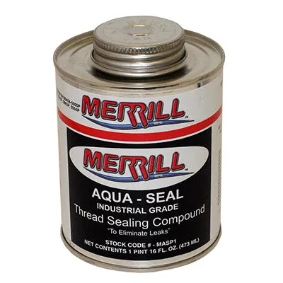 Merrill thread compound Aqua-Seal is slow drying, soft setting, non-hardening pipe thread compound. For use on all metals, ABS, PVC, CPVC, nylon, and plastic piping systems. Lead Free