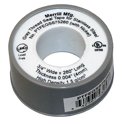 Merrill PTFEGSS75260 PTFE Teflon Thread Seal Tape - 3/4" Wide X 260" Long / 4mm / Gray with Nickel