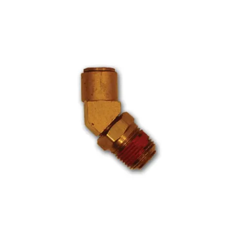 Midland Industries 20140 45 deg Elbow, 1/4 in Push-In x 1/4 in MIP Swivel, Brass