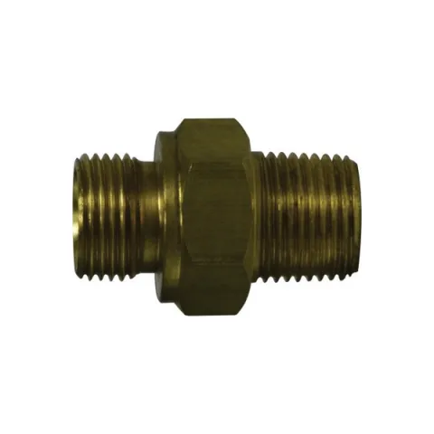 Midland Industries 28978 Hex Nipple, 3/8 in Male BSPP x 3/8 in MNPT, Brass