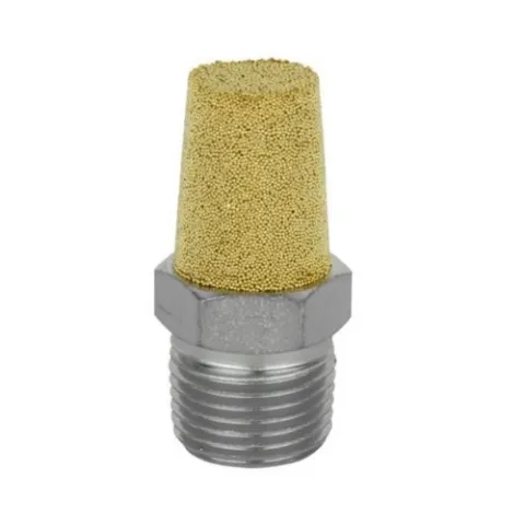 3/8" MNPT exhaust muffler is perfect for reducing pneumatic noise levels in the work environment. Muffler - filters use a porous sintered bronze, bonded to a copper plated steel pipe threaded fitting. 40 micron filters diffuse air and muffle noise from exhaust ports of air tools, cylinders and valves to an acceptable OSHA noise requirement.
