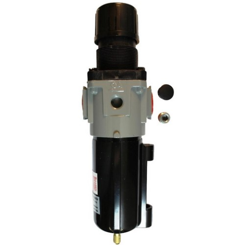 1/2" NPT piggyback duo has the features of the standard regulator, plus the space saving convenience of a combined filter. This piggyback filter regulator comes with a 6 ounce metal bowl and a 40 micron filter. With an automatic overnight drain and relieving regulator, this duo offers a non-rising adjustment and a 3 position knob to lock, adjust or remove. Has a maximum pressure of 200 PSI and 100 SCFM.