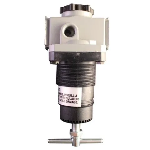 This regulator also has two offset 1/4" gauge ports which can serve as two 1/4" supply lines. As a standard pressure regulator, the 1/2" NPT Regulator has a maximum inlet pressure of 250 PSI with a regulated pressure range of 5-125 PSI. Regulators should always be preceded by a filter to eliminate damage to the unit or inaccurate air flow.