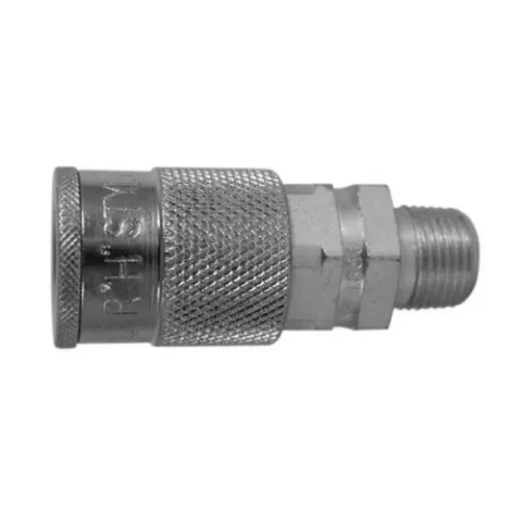 3/8" Male Body H style. Milton® H Style couplers are used in larger tool applications requiring more SCFMs. 300 PSI Maximum. Complete with Buna-N Seal.