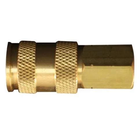 High flow V style couplers will accept A, M and V style plugs, however, to retain maximum air flow use V style plugs. Sleeve release is a push type and is easy to use; simply push plug into coupler to engage, pull sleeve back to remove. Perfect for high volume, low pressure applications. V style couplers have a 1/4" basic flow size and a maximum pressure of 300 PSI.