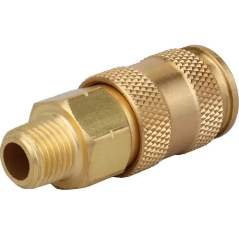 High flow V style couplers will accept A, M and V style plugs, however, to retain maximum air flow use V style plugs. Sleeve release is a push type and is easy to use; simply push plug into coupler to engage, pull sleeve back to remove. Perfect for high volume, low pressure applications. V style couplers have a 1/4" basic flow size and a maximum pressure of 300 PSI.