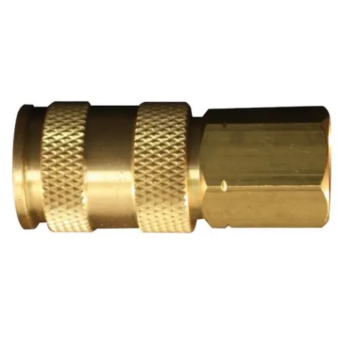 High flow V style couplers will accept A, M and V style plugs, however, to retain maximum air flow use V style plugs. Sleeve release is a push type and is easy to use; simply push plug into coupler to engage, pull sleeve back to remove. Perfect for high volume, low pressure applications. V style couplers have a 1/4" basic flow size and a maximum pressure of 300 PSI.