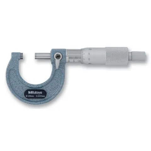 The Mitutoyo outside micrometer is ideal for measuring metal and non-metal workpieces. A ratchet-stop mechanism provides uniform pressure on a workpiece for precise, repeatable measurements. The friction thimble models allow for constant-force measurement for single handed operation.