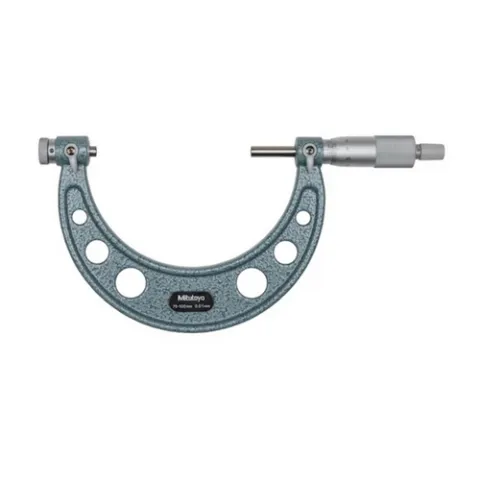 The Mitutoyo screw thread micrometer uses optional V-Anvil and conical spindle inserts interchangeably to precisely measure pitch diameters of metric or unified screw threads. A ratchet-stop mechanism provides uniform pressure on a workpiece for precise, repeatable measurements.