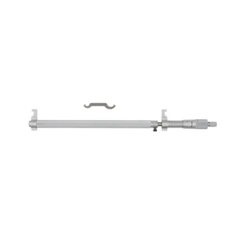 The Mitutoyo mechanical caliper-type inside micrometer provides the ability to measure inside dimensions with high accuracy using the precision of the Mitutoyo micrometer. Its caliper-type jaws are constructed of hardened tool steel for lasting durability and accuracy. A clamp locks the spindle for easier manual measurement readings. A Vernier scale takes highly accurate measurements.