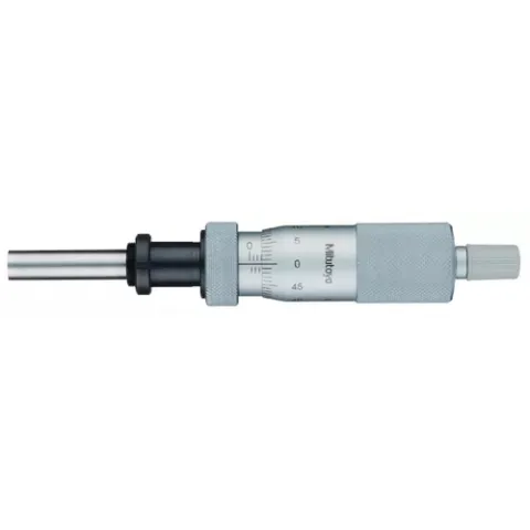 The Mitutoyo heavier duty micrometer head has a large spindle diameter of 8mm constructed of hardened steel for precision adjustments and measurements with heavy-duty use. Its carbide-tipped spindle is exceptionally flat, accurate and durable.