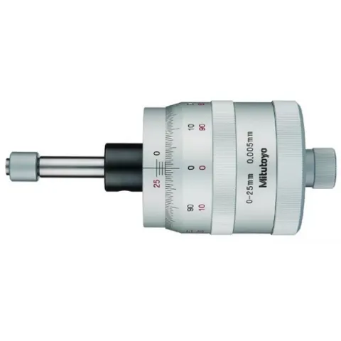 The Mitutoyo XY-stage micrometer heads are designed to make stage movements and adjustments easier and more precise. The micrometer heads have bi-directional graduations for easier measurement readings in both directions, and a floating thimble allows zero setting at any spindle position simple and accurate.