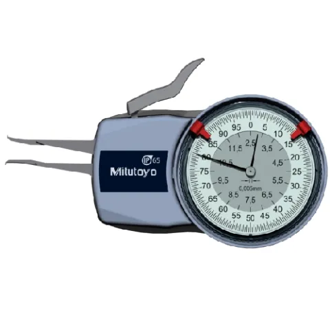 The Mitutoyo internal dial indicator utilize spring-loaded jaws to make constant point contact pressure to take highly accurate comparison measurements of hole diameters and groove and tube thicknesses. The dial display provides precise, readable measurements.