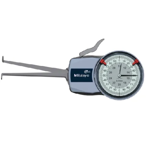 The Mitutoyo internal dial indicator utilize spring-loaded jaws to make constant point contact pressure to take highly accurate comparison measurements of hole diameters and groove and tube thicknesses. The dial display provides precise, readable measurements.