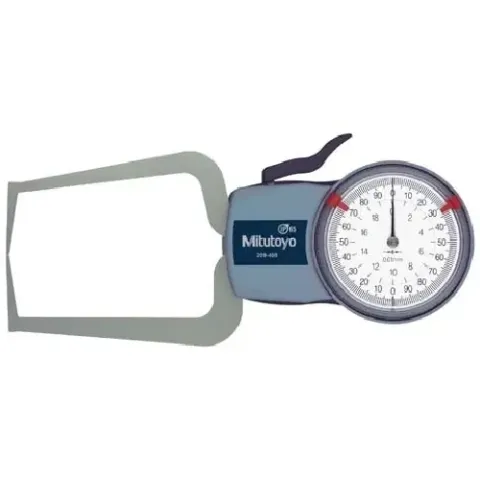 The Mitutoyo external dial caliper gage utilizes spring-loaded jaws to provide constant point contact pressure to take highly accurate comparison measurements of hole diameters and groove and tube thicknesses. The dial display provides precise, readable measurements in metric or inches.