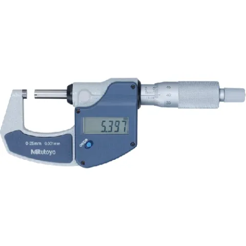 The Mitutoyo MDC-Lite Digimatic digital micrometer's ratchet thimble mechanism provides a constant measuring force on the spindle to ensure accurate, repeatable measurements. The combination of the ratchet thimble and speeder enables a rapid spindle feed when measuring a wide range of different dimensions, or easier one-handed measurements.