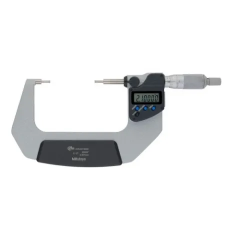 The digital Mitutoyo spline micrometer is ideal for measuring minor indents, slots, spline shafts and keyways on workpieces. The anvil and spindle each have reduced diameters to better measure internal features with high accuracy. A ratchet-stop mechanism provides uniform pressure on a workpiece for precise, repeatable measurements. Measurements are displayed on a coolant-proof, easy-to-read LCD display.
