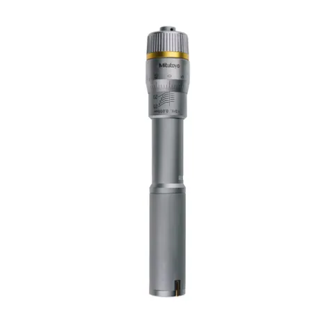 The Mitutoyo Holtest mechanical three-point internal micrometer utilizes three self-centering anvils with precision contact points for accurate and efficient measurements of inside dimensions of bores.