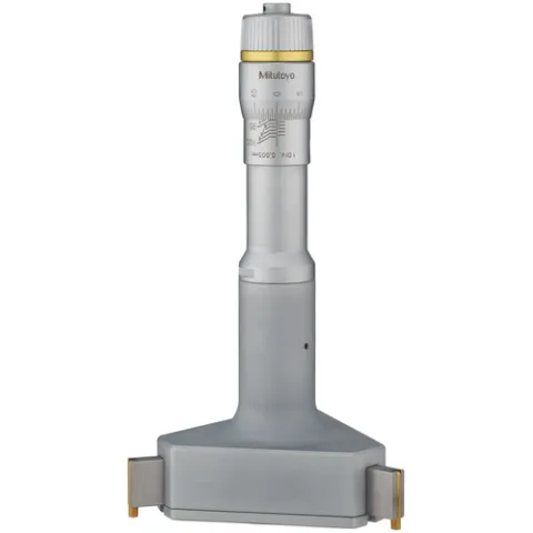 The Mitutoyo Holtest mechanical three-point internal micrometer utilizes three self-centering anvils with precision contact points for accurate and efficient measurements of inside dimensions of bores.