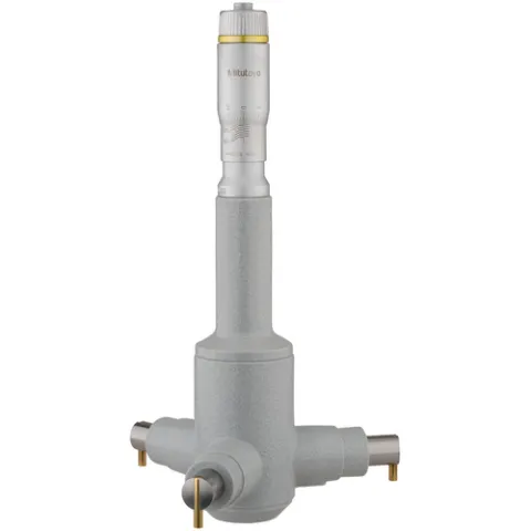 The Mitutoyo Holtest mechanical three-point internal micrometer utilizes three self-centering anvils with precision contact points for accurate and efficient measurements of inside dimensions of bores.