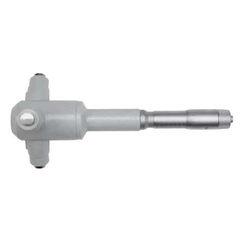 The Mitutoyo mechanical Holtest internal micrometer features three alloy steel anvils evenly spaced at 120° for true alignment of the axis bore for accurate, easily repeatable measurements. A hardened steel spindle with a carbide ball and cone with a carbide pin ensure accuracy and durability when extending and retracting the anvils. The holtest's ratchet stop mechanism provides a constant measuring force on the hardened-steel spindle to ensure accurate, even measurements.