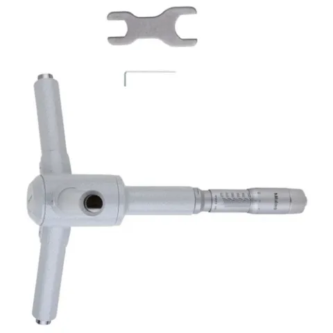 The Mitutoyo mechanical Holtest internal micrometer features three alloy steel anvils evenly spaced at 120° for true alignment of the axis bore for accurate, easily repeatable measurements. A hardened steel spindle with a carbide ball and cone with a carbide pin ensure accuracy and durability when extending and retracting the anvils. The holtest's ratchet stop mechanism provides a constant measuring force on the hardened-steel spindle to ensure accurate, even measurements.