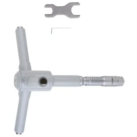 The Mitutoyo mechanical Holtest internal micrometer features three alloy steel anvils evenly spaced at 120° for true alignment of the axis bore for accurate, easily repeatable measurements. A hardened steel spindle with a carbide ball and cone with a carbide pin ensure accuracy and durability when extending and retracting the anvils. The holtest's ratchet stop mechanism provides a constant measuring force on the hardened-steel spindle to ensure accurate, even measurements.