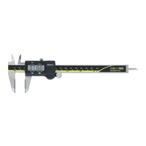 The Mitutoyo ABSOLUTE digital caliper delivers accurate, repeatable outside dimension, inside dimension, depth and step measurements with accuracy and unrestricted speed. The caliper's slide and jaws are constructed of hardened stainless steel with optional carbide-tipped jaws available. The impact-resistant, easy-to-ready LCD display is highly durable and provides large character height (9.0mm in height) which improves readability.