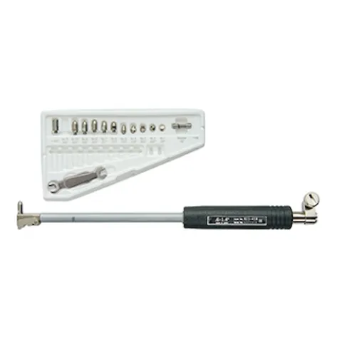 The Mitutoyo blind hole bore gage is ideal for measuring the inner dimensions at the bottom of blind bores and holes. Interchangeable anvils are constructed of alloy steel allow for measurements of a wide range of bore diameters. A pendulum guide structure offers the ability to slide the gage for easier measurements without sacrificing accuracy. A two-point contact system detects geometry anomalies such as ovalness and taper.