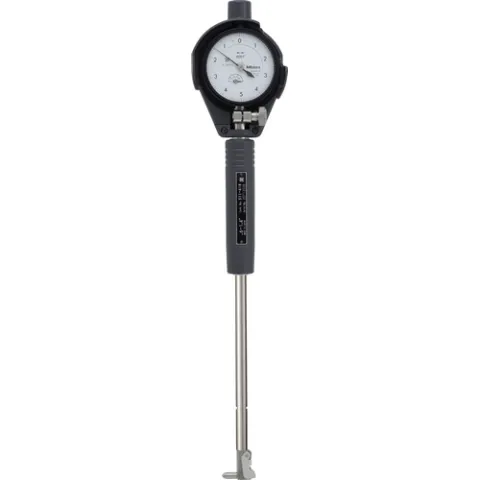 The Mitutoyo blind hole bore gage is ideal for measuring the inner dimensions at the bottom of blind bores and holes. Interchangeable anvils constructed of alloy steel allow for measurements of a wide range of bore diameters. A pendulum guide structure offers the ability to slide the gage for easier measurements without sacrificing accuracy. A two-point contact system detects geometry anomalies such as ovalness and taper.
