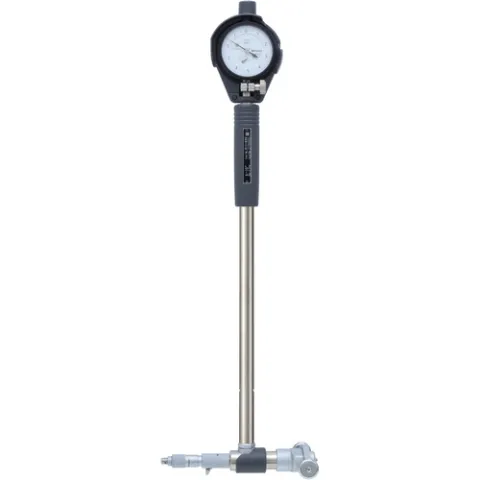 The Mitutoyo bore gage with micrometer head delivers a wide range of bore measurement capabilities at high accuracy to 0.00008". Interchangeable anvils constructed of alloy steel attach to the micrometer head for accurate dimensional setting. The anvils feature a carbide-tipped ball for better measurement reliability and longevity.