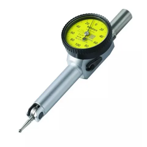The Mitutoyo pocket dial test indicator has a reversible measuring direction and adjustable contact point to measure surface variations in narrow or recessed areas. The pocket type indicator has a horizontal face parallel to the axis, and three dovetail mounts allow for horizontal or vertical mounting from the front, top or back of the indicator. The indicator's one-piece movement provides high-impact resistance and better durability, while jeweled bearings deliver high sensitivity and quick response.