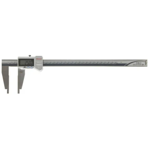The Mitutoyo Digimatic digital caliper features nib style jaws with rounded measuring faces to fit rounded surfaces closer to make highly accurate inside dimension measurements.