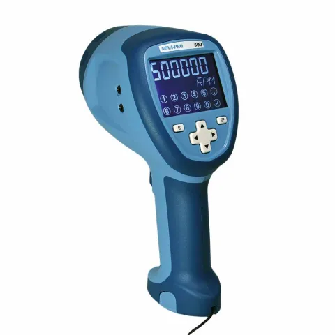 Nova-Pro® 500 LED Stroboscope/Tachometer is designed for simple stroboscopic stop motion inspection and RPM measurement applications. The included integral laser module is a patented unit that can be added to make the Nova-Pro 500 a full-featured tachometer. NIST Traceable Certificate included.