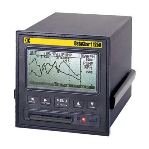 The DataChart™ DC1250 is a versatile solid-state data recorder/panel indicator. It has all the capability of a traditional paper recorder - variable chart speeds, the ability to review historic data, see trends and more, with a number of specific exceptions - NO PAPER to jam, no ink to smudge and no pens to clog or break. The data is stored on a CompactFlash® memory card, which can be easily transported.