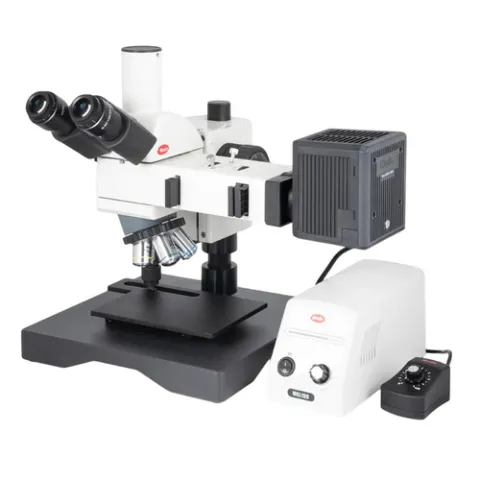Motic's new LM Plan-Achromatic objectives with Long-Working Distance for incident light provide optimal image contrast for reflective, non-covered specimen. Together with a fully corrected tube lens an intermediate image without colored fringes is created. In all models the Epi-Illuminator offers a powerful 50W Halogen light source. The built-in field diaphragm and aperture diaphragm help to optimize image quality by reducing stray light and thus increasing contrast. As a standard, an anti-fungus treatment has been applied to the complete microscope to ensure a long lifetime in humid environments.
