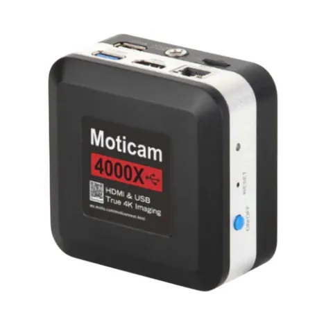 Discover the newest Moticam 4000X, designed for efficiency and to output fast live images at 4K (3840 x 2160 px). Connect it through the HDMI port to a screen and display your live image. With the use of the on-board software and a USB mouse, you can make live measurements, notes, image adjustments and more, directly on the HDMI screen, without the need for a computer.