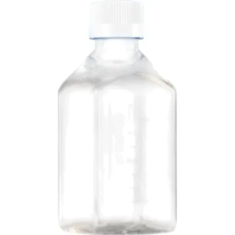 High precision cap and bottle mold ensure secure leak-proof seal without the need for an inner gasket. Bottle formed by injection blow molding for a super-smooth interior finish. Interior of neck and body of bottle guaranteed to be free of flash or burs. The smooth inner surface minimizes residue on the walls, while the uniform wall thickness enhances resistance to cracking and puncturing. The bottom features curved inner corners for easier cleaning. Tray-packed bottles are sealed with a one-piece plastic coating applied by automated packaging equipment, providing enhanced protection, minimizing collisions, and preventing contamination or product loss. Particle free double-layer packaging ideal for clean room use. Discard the outer layer to help maintain environmental quality and particle counts. Temperature range -94°F (-70°C) to 302°F (150°C). USP Grade VI Polycarbonate (PC) - Also ISO 10993-1:2018 compliant.