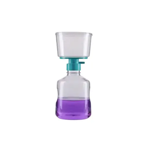 Vacuum bottle-top filter systems provide an affordable and convenient method for sterilizing and clarifying biological media. Equipped with PVDF membranes, these filters offer excellent chemical resistance and lower protein binding compared to membranes like PES.