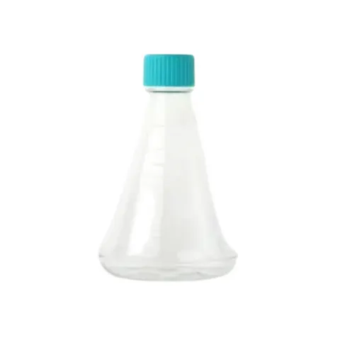 Erlenmeyer flasks are ideal for suspension cell and bacterial cultures, and are also well-suited for medium preparation, mixing, and storage. A baffled bottom enhances gas exchange and oxygen dissolution in the culture medium, but may also increase shear stress on cells. Individually packaged in sterile bags. An injection-molded scale on the flask body allows easy monitoring of liquid volume.
