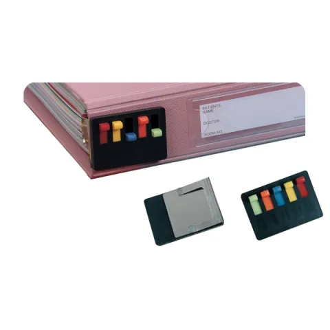 Alerts nursing and physician personnel of patient charting needs. Tabs easily slide from blank to reveal one or all five highly visible color coded windows.