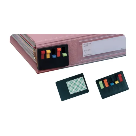 Alerts nursing and physician personnel of patient charting needs. Tabs easily slide from blank to reveal one or all five highly visible color coded windows.