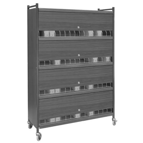 American Made fully enclosed panels protect your charts from general access and require key security to access patient information. Omnicarts offer durability, value and versatility. The welded steel frame gives the cart a long lasting attractive finish. It is shipped assembled and features a cap shelf for additional storage.