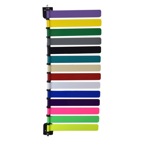 Omnimed room identification systems are made of durable powder coated aluminum and hold 1-16 flags per unit. Available in 16 different sets, these flags promote efficient operations by providing a clear visual signal for staff. These non-electrical units are quiet to operate and can rotate 180 degrees. This flag system comes with 8 inch flags that can be inverted to reverse their color order.